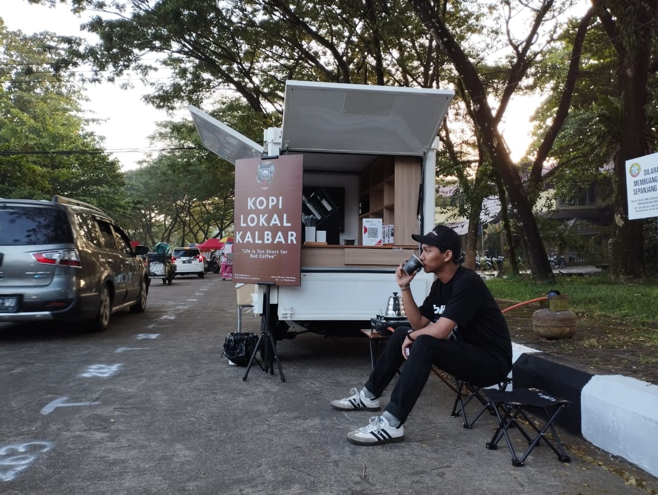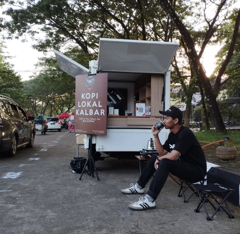 Street coffee yang menyajikan kopi lokal Kalimantan Barat, Robusta desa Pasak Piang, Kubu Raya, Robusta Bengkayang, Liberika Sambas, bertempat di Jl Hos Cokroaminoto (jl Merdeka) Pontianak, dekat kampus Widya Dharma