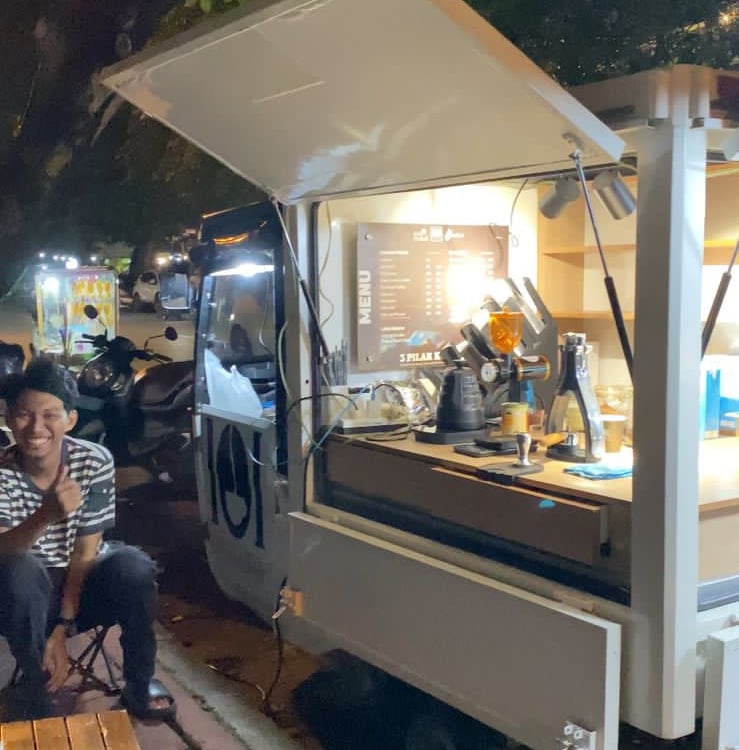 Street coffee dengan menggunakan TVS MOKO ini hasil dari kerjasama dengan PLN UID Kalimantan Barat dalam rangka pengembangan kopi lokal Kalimantan Barat, menjadi salah satu media promosi, memberikan dampak sosial yang sangat baik untuk petani dan daerah, menjadi penghubung antara petani dengan konsumen. 3 Pilar Kopi adalah nama yang diberikan sebagai perwakilan dari kolaborasi, bersama membangun kopi lokal Kalimantan Barat.